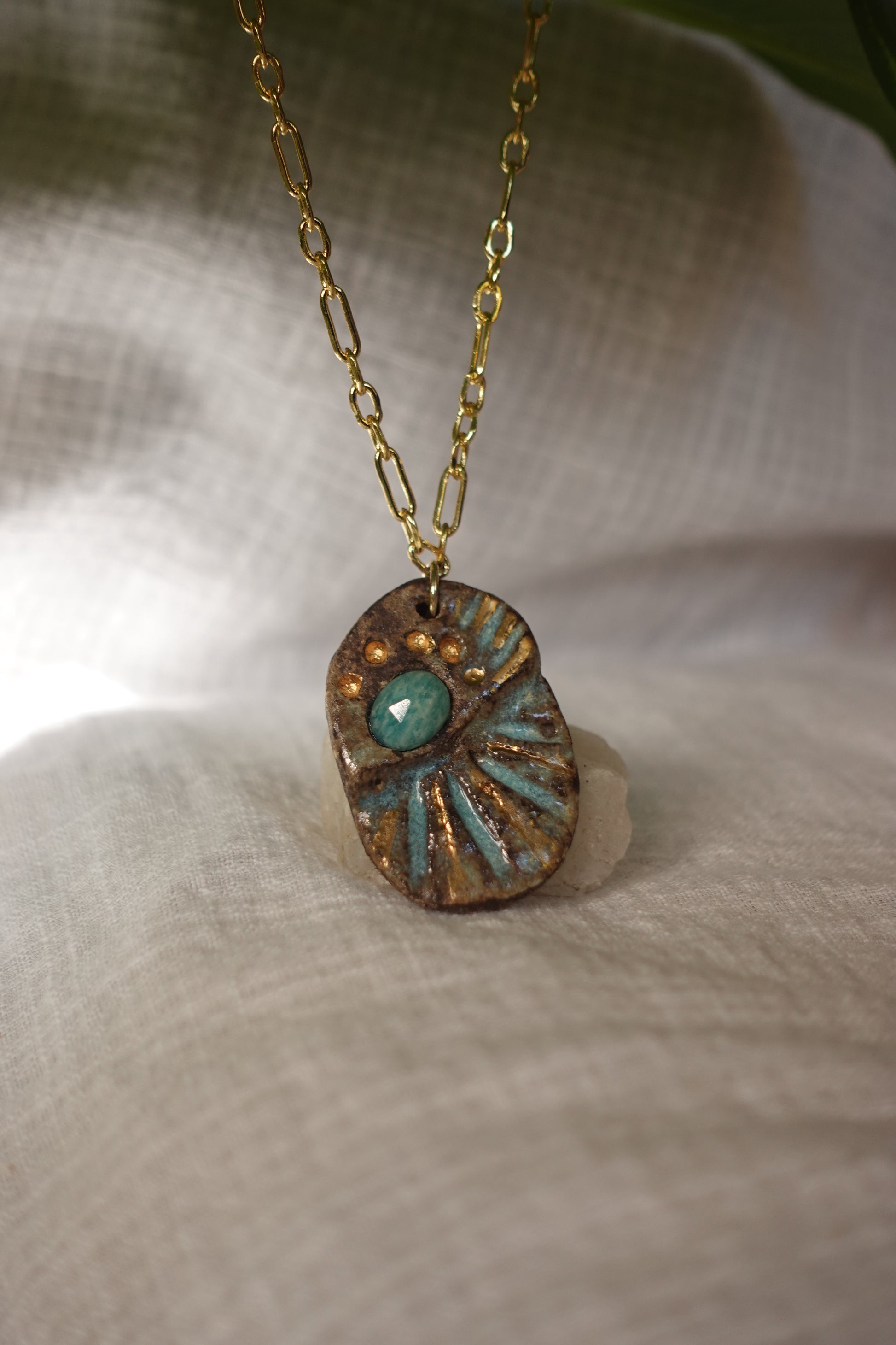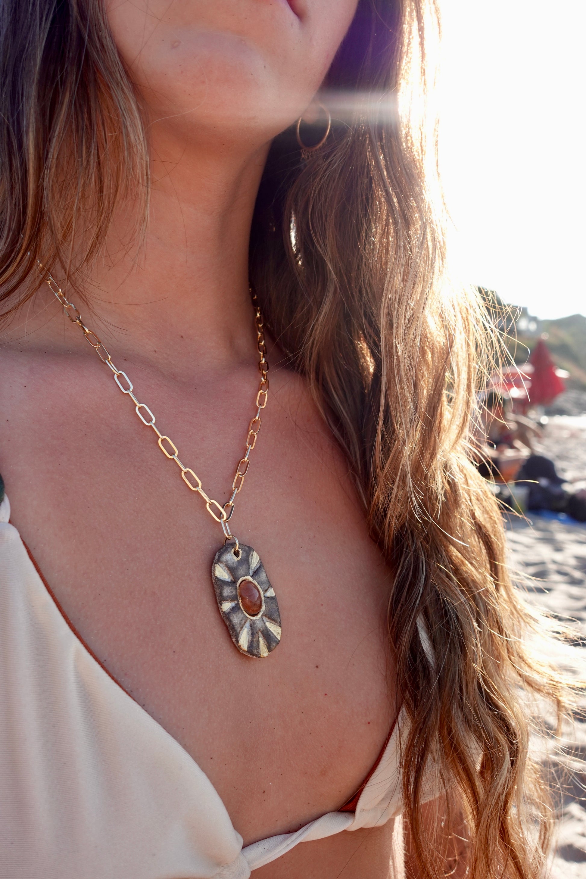 El Collar combina la belleza de la cerámica con la autenticidad de la piedra natural, inspirándose en la fuerza y calma de la tierra. Este accesorio te acompaña con un toque natural y elegante, ideal para quienes buscan conexión y equilibrio en su estilo diario.